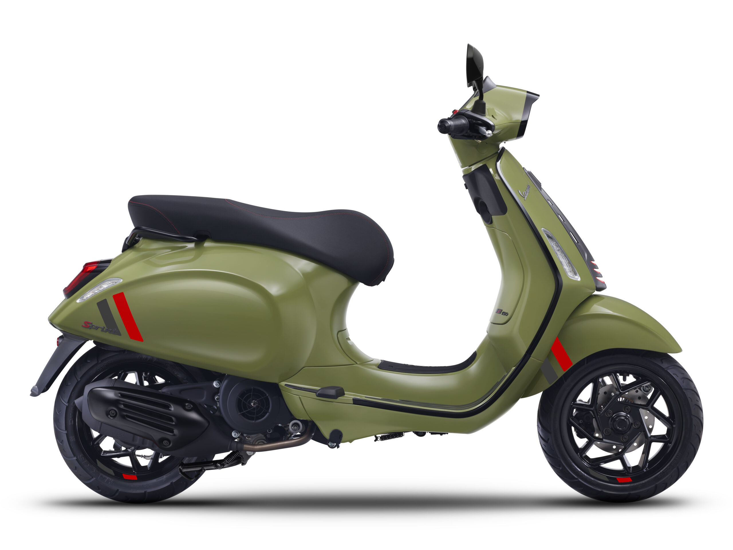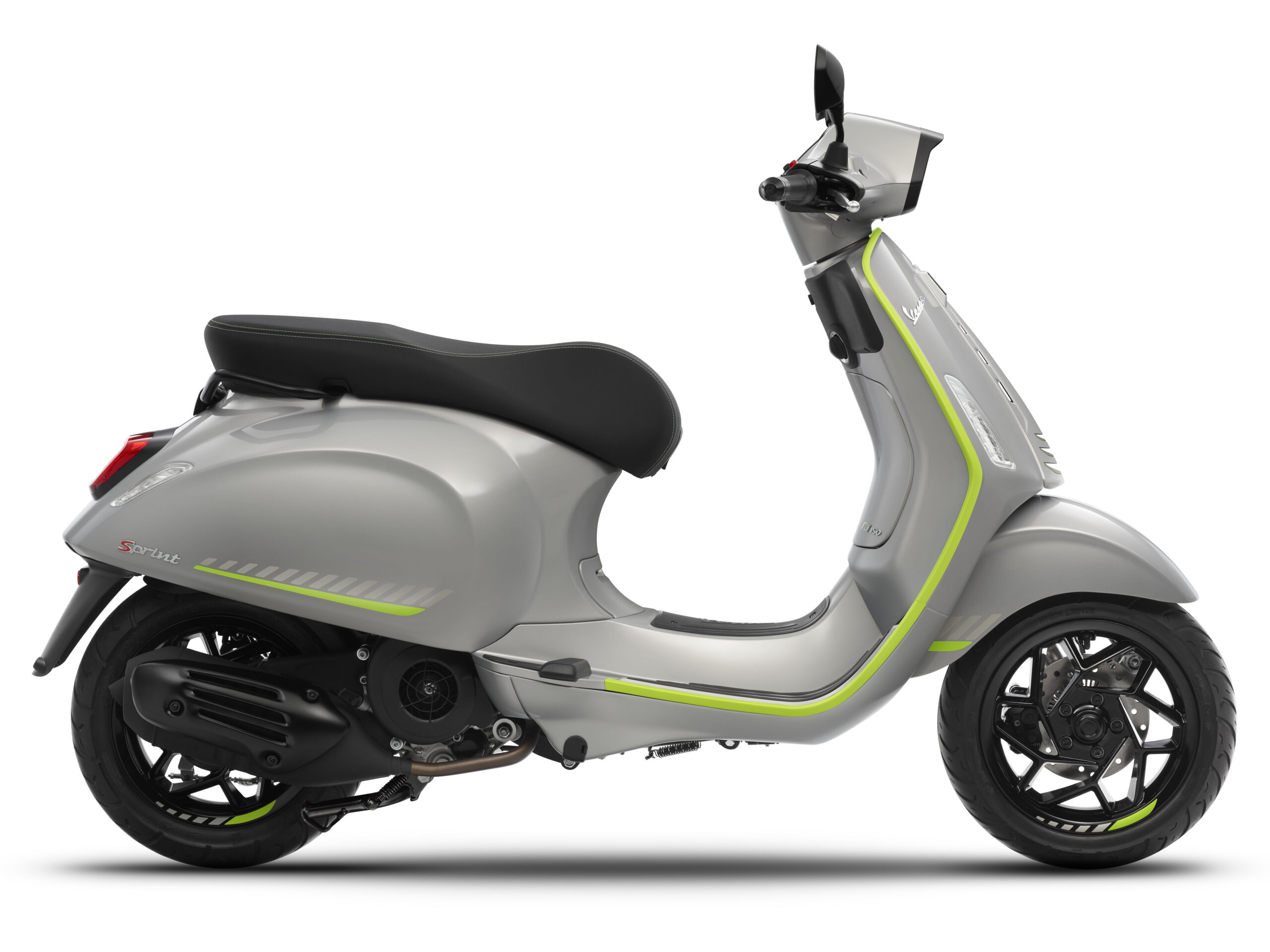 Vespa Sprint S tersedia pilihan warna Grey Intrepido, Black Convinto, Green Tenace, dan White Innocente yang menonjolkan kesan sporty.