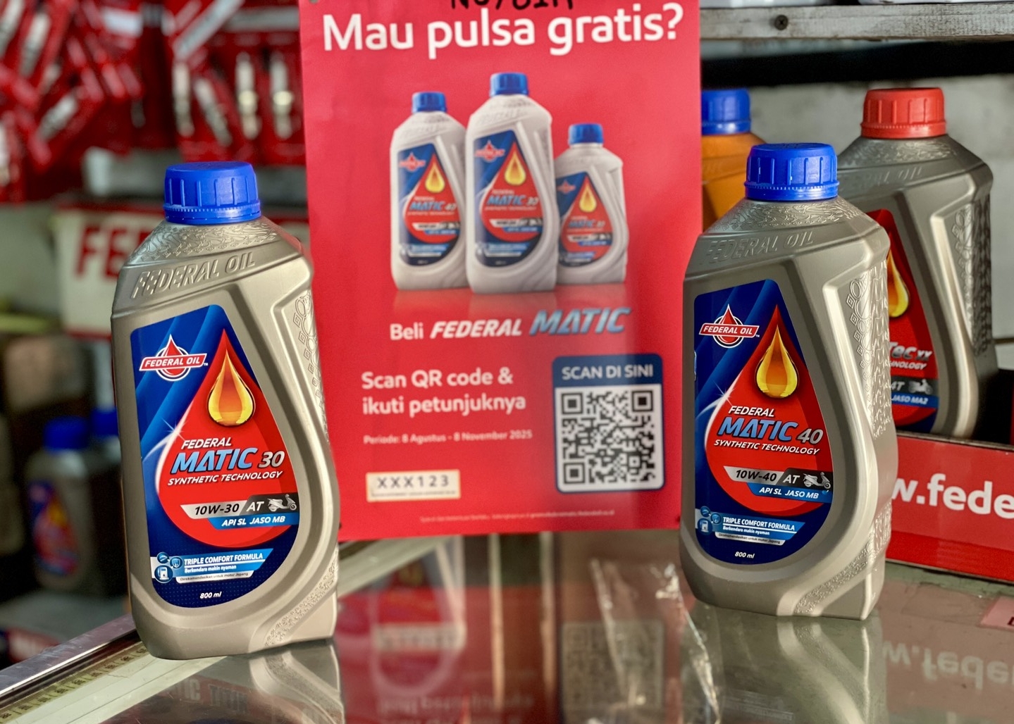 Program ini berlaku untuk pembelian produk Federal Matic 10W-30 ukuran 0.8L dan 0.65L, serta Federal Matic 10W-40 ukuran 0.8L.