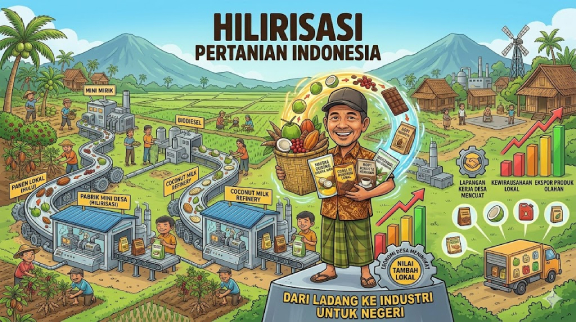 Ia menyoroti selama ini Indonesia kerap kehilangan potensi keuntungan karena menjual bahan baku ke luar negeri. Produk olahan justru diproduksi negara lain dengan margin yang jauh lebih besar. “Komoditas pertanian harus diolah di dalam negeri agar nilai tambahnya dinikmati oleh rakyat Indonesia, terutama petani,” katanya.